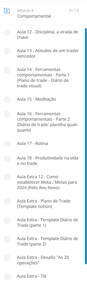 Trabalhar aspectos comportamentais é um grande diferencial do Shark Map School, tendo em vista que a não é possível ter resultados no mercado financeiro sem ter um psicológico alinhado à ténica e ao Gerenciamento de Risco. Muitos traders nos procuram relatando a dificuldade em ter resultados por conta da falta de controle emocional. Apresentamos várias ferramentas para que o Trader evolua seu comportamento à frente da tela.